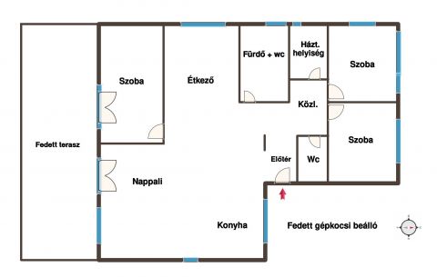 - a ház alapterülete: 141 nm (lakóterülete: 115 nm + fedett gépkocsi beálló: 22 nm + fedett terasz: 29 nm)