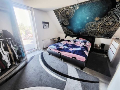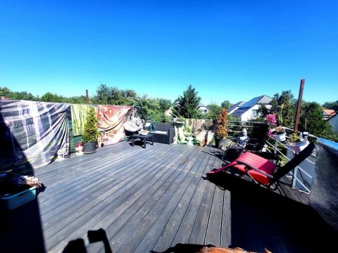 Fával burkolt, óriási terasz a szülői hálószobából