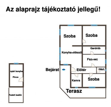 Az ingatlan 3 szobával rendelkezik, praktikus elrendezése kényelmes otthont biztosít kisebb családok vagy párok számára is. A ház falazata Ytong, terméskő és tégla kombinációja, amelyet 8 cm-es grafitos szigetelés egészít ki, így energiahatékonysága kiváló.