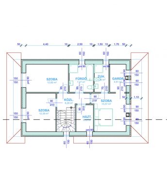 Emeleten: 2 szoba, 1 felnőtt hálószoba azon belül nyílik egy gardrób és zuhanyzó+wc, közlekedő, további fürdőszoba+wc.