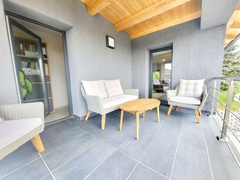 Az ingatlanban található egy amerikai konyhás nappali, 4 szoba, gardrób, 2 fürdőszoba, 1 külön wc, fedett terasz, panorámás erkély.
