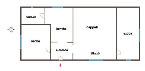 - Helyiségek: nappali/étkező, 2 szoba, konyha, fürdőszoba/wc