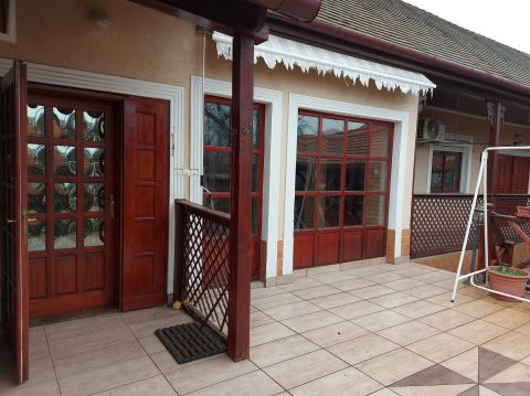A ház központi részén egy tágas, hangulatos nappali helyezkedik el, melynek plusz értéket egy látványos, vízteres kandalló ad. Ez nem csak esztétikailag, hanem fűtés szempontjából is lényeges, ugyanakkor egyedi nem szokványos megoldás. A nappalin kívül még 2 külön nyíló szoba, egy hatalmas konyha, kamra, előszoba, külön wc és fürdőszoba, garázs és pince helyiségek tartoznak az ingatlanhoz. Az udvaron töltött nyugodt pihenést, a - nappaliból is közvetlen átjárható- tágas terasz teszi lehetővé.