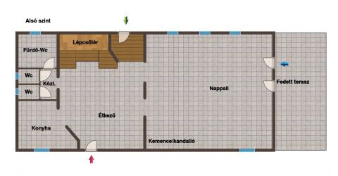 alsó szinten - Amerikai konyha nappali (100 nm!)+ fürdő-wc-k