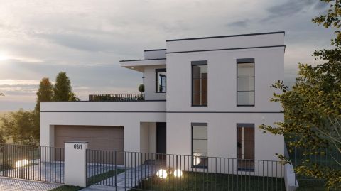A 2391 nm-es telken elhelyezkedő, 298 nm-es ingatlan modern, világos és elegáns megjelenéssel került megtervezésre.