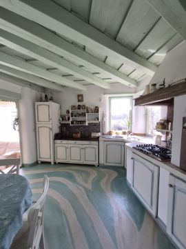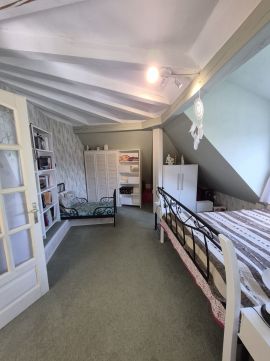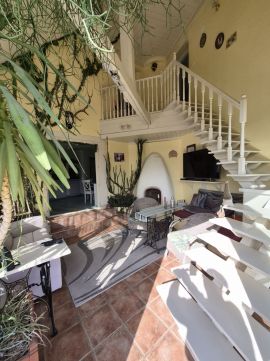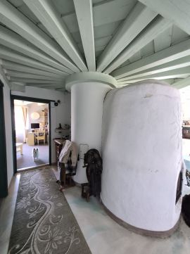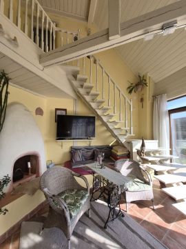 141m²-es belső két szintes,különleges ötszögletű lakóház 4 szobával, konyhával, fürdőszobával, kamrával, télikert-nappalival és terasszal. A ház fűtése fatüzelésű kemencével és légfűtéssel biztosítja a meleget. A télikertből csodálatos kilátás nyílik a környező dombokra és völgyekre.
