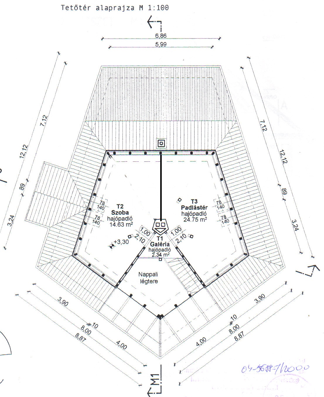 Lakóház: 141 m² (100 m² földszint + 41 m² tetőtér)