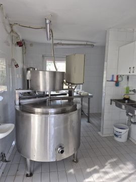 60 m²-es működő sajtkészítő üzem pasztőröző-sajtkészítő káddal, hűtőkamrával, csomagoló helyiséggel. A berendezések az eladás részét képezik. Az épület másik fele jelenleg oktatóterem, így gazdasági és képzési célokra egyaránt alkalmas.
