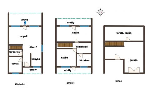- pince: 70 nm (2 állásos garázs, tárolók, kazánház)
