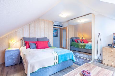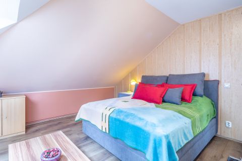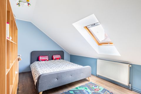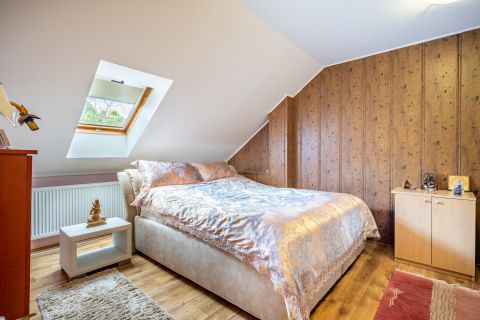 Az ingatlan három tágas hálószobával rendelkezik. A hálóhelységek az emeleten kaptak helyet. Található még az emeleten természetesen fürdőszoba is ,tágas közlekedővel és egy napfényes galéria a lépcsőfeljáróban ahol akár egy jó könyv társaságában elvonulhatunk.