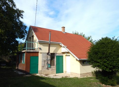 Állandó lakhatásra is alkalmas, fűthető, bájos nyaraló medencével a Balatontól 7 km-re eladó!