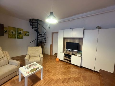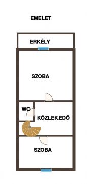 emeleten: 2 szoba, külön wc, erkély utca frontra a nagyobbik szobának.
