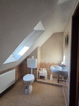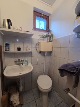 Fűtése gáz cirko fűtésrendszer, a földszinten vízteres kandalló is biztosítja a meleget. A földszinten található a két üzlethelyiség, mindkettőhöz saját WC tartozik, illetve a lakó részen is kialakításra került még egy WC. Korábban a lenti részt használták konyhának, de jelenleg a középső szinten az egyik szobából lett kialakítva a konyhai rész, ha az új tulajdonosnak szimpatikusabb, bármikor vissszaállítható az eredeti földszinti konyha. A nagyobb - két szintes - üzletrész külön mérőórával felszerelt.