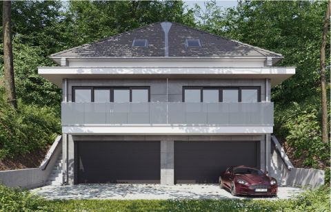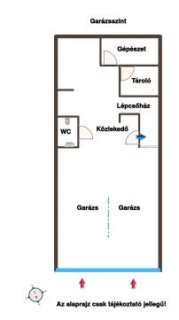 - Garázsszint: 2 állásos garázs, tárolók, háztartási helyiség és egy vendégszobának is alkalmas vizesblokkal ellátott tér.