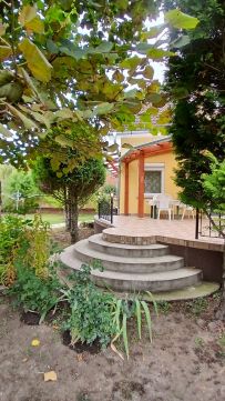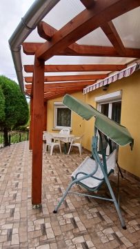 A házhoz tartozik egy hatalmas terasz is, amely a nyári esték tökéletes helyszínéül szolgál.