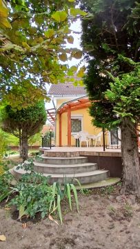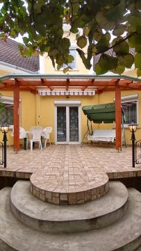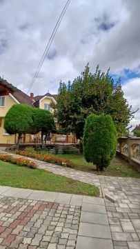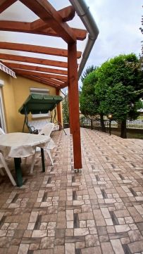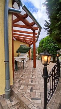 Rendezett kis udvar és a körbekerített, igényesen kialakított kerítés gondoskodik a privátságról és biztonságról.