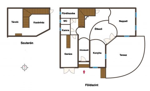 Szuterénben tároló és kazánház található, így a tárolásra szoruló dolgoknak is külön helyük van.