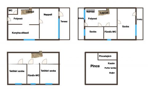 A tetőtérben további két szoba és egy fürdőszoba található.
