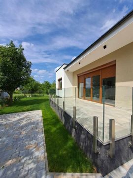 Hőszigetelt,színterezett aluminium redőnyökkel, háromrétegű hőszigetelt üvegezésű nyílászárókkal, saját pergolás gépkocsi beállóval, 8 m3-es földalatti csapadékvíztárolóval ellátva,