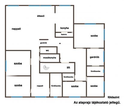 8 hálószoba, 5 fürdőszoba, 2 amerikai konyhás nappali, belső lift