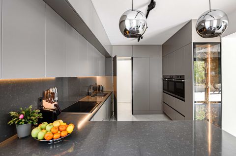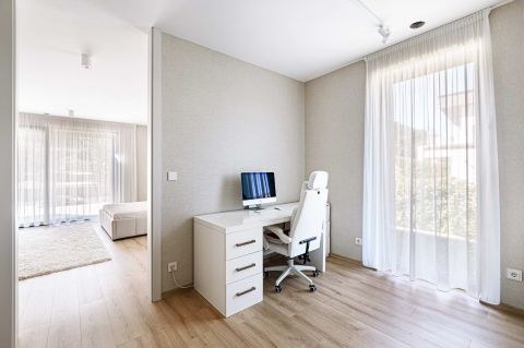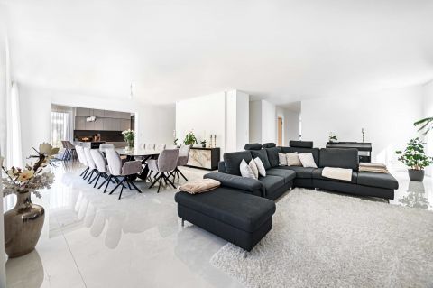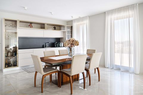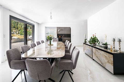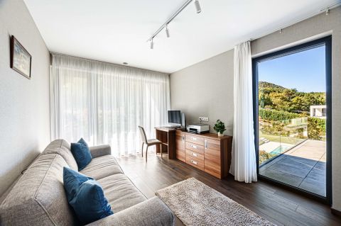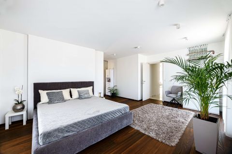 A villa jelenleg családi házként funkcionál. A földszinten egy több, mint 300 nm-es lakás van kialakítva és a penthouse részben található a szülői lakosztály.