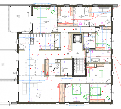 Passzívház-minőségű gépészet: hőszivattyús fűtés-hűtés, mennyezeti hűtés, padlófűtés