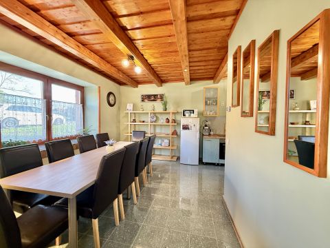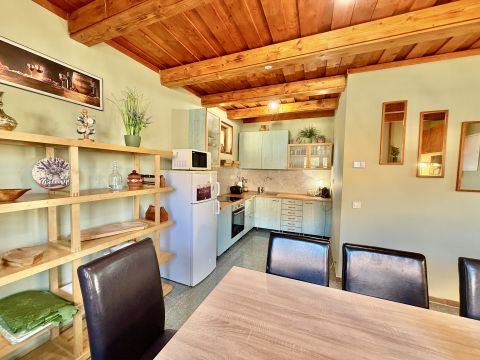 - Tágas közösségi tér: nappali, étkező és felszerelt konyha