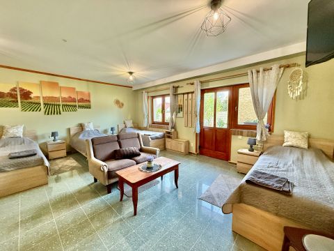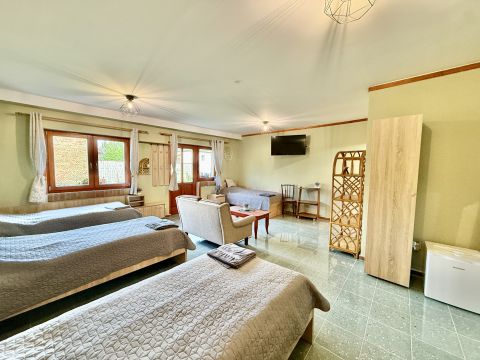- 4 külön nyíló szoba: 1 db 5 fős és 3 db 3 fős szoba