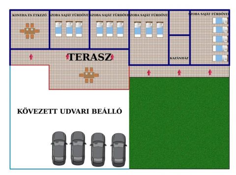 - Minden szoba saját fürdőszobával és WC-vel rendelkezik