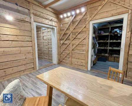A lakószinten tágas szobák, konyha, fürdő, galériás tér és egyedi fa falburkolatok jellemzik a helyiségeket.