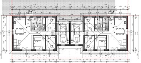 Az ikerfeleket hangszigetelő téglafal, és a garázsok is szeparálják egymástól, minden a legújabb energetikai elvárásoknak megfelelően kerül kivitelezésre.