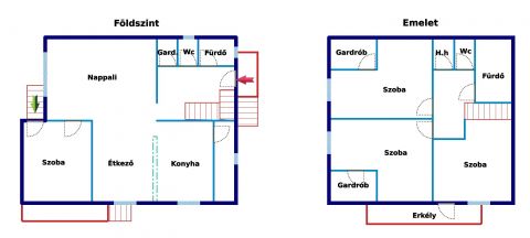 - földszint kb. 94 nm + emelet 78 nm ( + erkély ) + pince kb. 30 nm