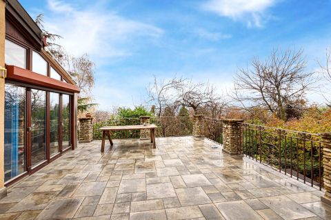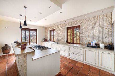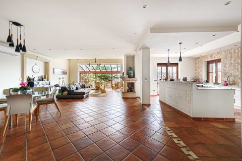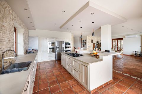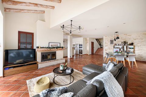A szinteltolásos nappali természetes fényben fürdik, amelyhez modern konyha és étkező kapcsolódik.Ezen a szinten található még egy hangulatos télikert, vendégszoba és egy elegáns fürdőszoba.A konyhából egy 25 m²-es, panorámás teraszra léphetünk ki, amely tökéletes helyszín a családi étkezésekhez vagy esti borozásokhoz.