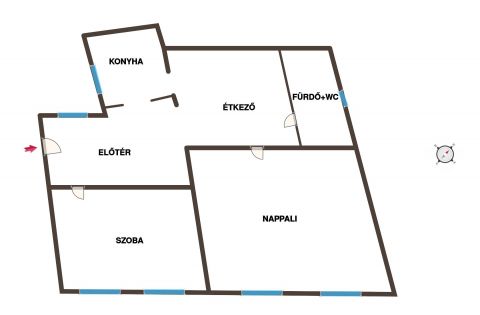 A lakás praktikus elrendezésű: az előtérből nyílik a hálószoba, a konyha-étkező és a fürdő, az étkezőből pedig a tágas nappali.
