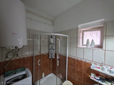 Külön WC és tusolós fürdőszoba került kialakításra. Az épülethez aknás garázs, valamint egy kinti tároló tartozik, amely alatt jó állapotú borospince található. A ház alatt egy kisebb pince is rendelkezésre áll.