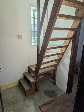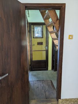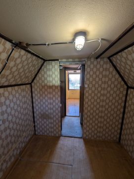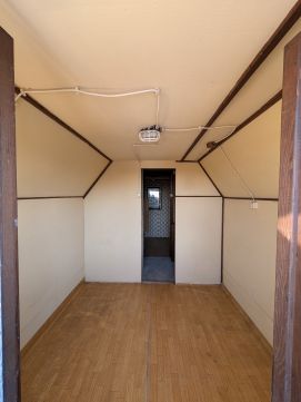 46 m2-es , 2 szoba tetőtérben , nappali , konyha ,tusoló helység , külön wc földszinten , 1030 nm-es telken.