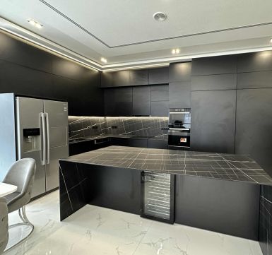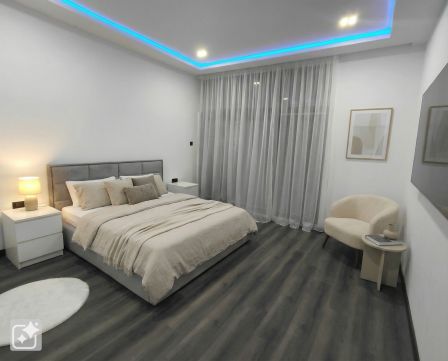 Az otthonban 3 kényelmes hálószoba található, melyek közül kettő saját, elegáns fürdőszobával és WC-vel rendelkezik, maximális intimitást és komfortot biztosítva. A burkolatok kiválasztásánál a legmagasabb minőség volt az elsődleges szempont: az ingatlant igényes márvány burkolatok, valamint magas minőségű, egyedileg tervezett konyhabútor teszik igazán exkluzívvá. A ház karakterét tovább emeli az egyedi méretezésű, prémium minőségű bejárati ajtó.