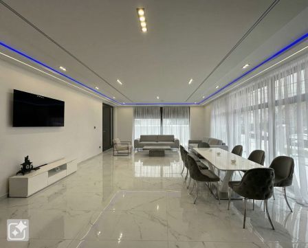 Az ingatlan 180 nm hasznos lakótérrel és további 140 nm-es, tágas terasszal rendelkezik, így ideális választás mindazok számára, akik nagyvonalú tereket és kényelmes életteret keresnek. A ház letisztult formavilága és átgondolt belső elrendezése azonnal magával ragad: a központi élettér egy hatalmas, világos amerikai konyhás nappali, amely tökéletes helyszíne a családi együttléteknek és baráti összejöveteleknek.