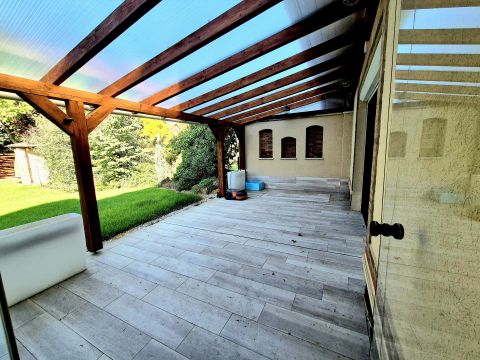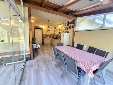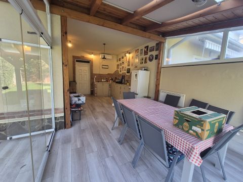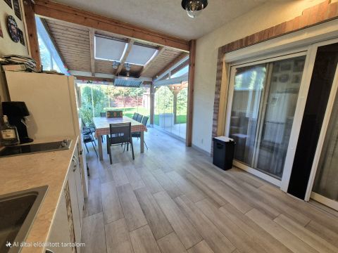 - az ingatlanhoz közvetlenül kapcsolódik egy téliesített fedett terasz tetőablakokkal és nyitható üveggel zárt (25 nm), amely fűthető, klímával, és konyhaszigettel rendelkezik. A Terasz üveggel fedett, mely igény esetén teljesen kinyitható.