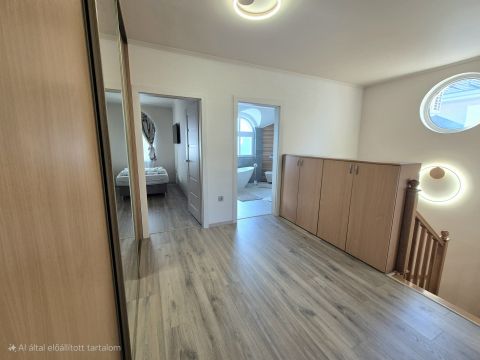 Eladásra kínálom Debrecen Liget I. lakóparkjában, játszótérrel, teniszpályával, sportpályával, 24 órás állandó portaszolgálattal, beléptető rendszerrel ellátott 180 m2-es, kétszintes, hőszigetelt, napelemmel ellátott, riasztóval rendelkező sorházi lakást, amely a modern elegancia és a praktikum tökéletes harmóniája.