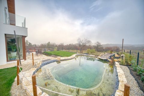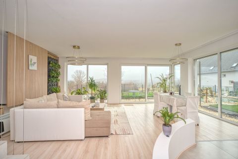 Örök panorámás, minden igényt kielégítő új építésű modern stílusú ikerház.