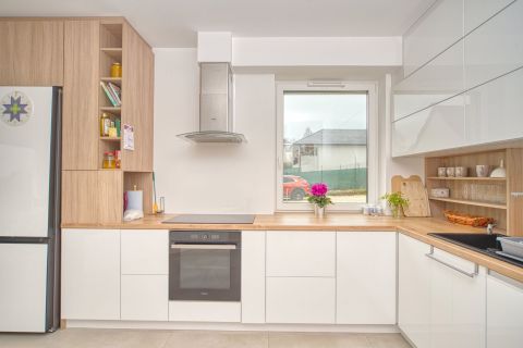 Az alsó szinten az előszobába belépve azonnal magával ragad a kifinomult ízléssel megálmodott otthon, ahol egy 43 nm-es amerikai konyhás nappali fogad Minket. A prémium minőségű konyhabútor, minden háziasszony álma.