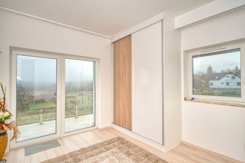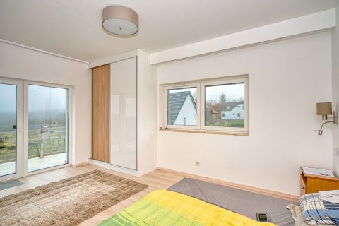 Az emeleti szobákból élvezhetjük Solymár természeti adottságait az örök panorámán keresztül.