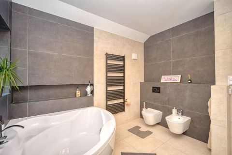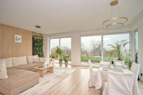 Az ikerház kiváló elosztással rendelkezik, praktikus kialakítással, emeletenként fürdőkkel, tágas hálószobákkal és intim, kert kapcsolatos terasszal.