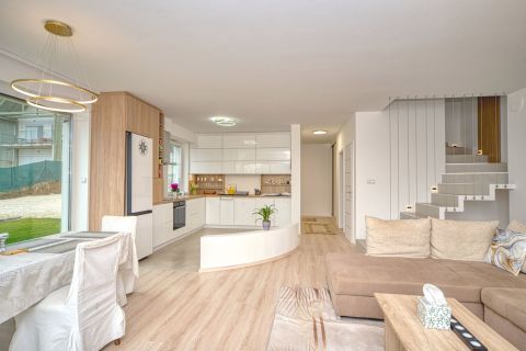 A vételár ár tartalmazza a gépesített beépített konyhabútort, a teljes befejezést, a térkövezést, kapu kialakítását, és a maradék bútorok befejezését, valamint a terasz kialakítását es burkolását.