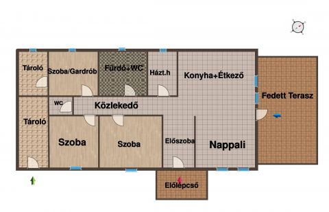 Kialakítása: 3 szoba, tágas amerikai nappali konyha, előtér, közlekedő, háztartási helyiség, fürdő+wc, külön wc, gardrób, tároló.