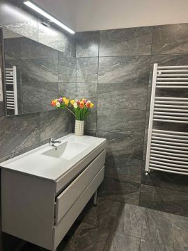 Prémium kivitelezésű, igényes burkolatok és gépiesített konyhabútor. Redőny és szúnyogháló minden ablakon.