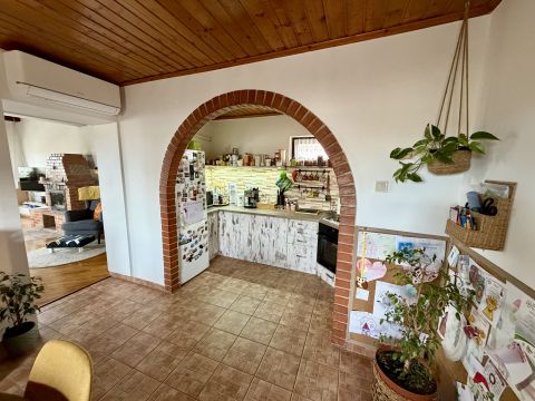 A nappali meghitt hangulatáról egy gyönyörű kandalló gondoskodik, míg a meleget az új gázkazán biztosítja. A nyári komfortérzetet 2 klímaberendezés garantálja.