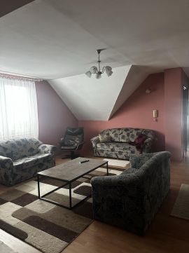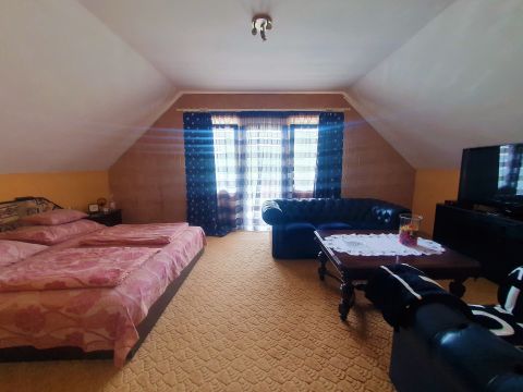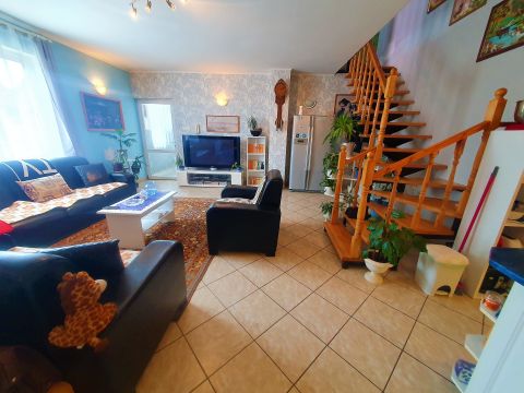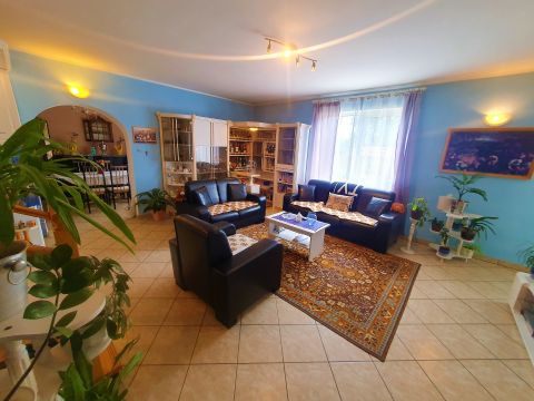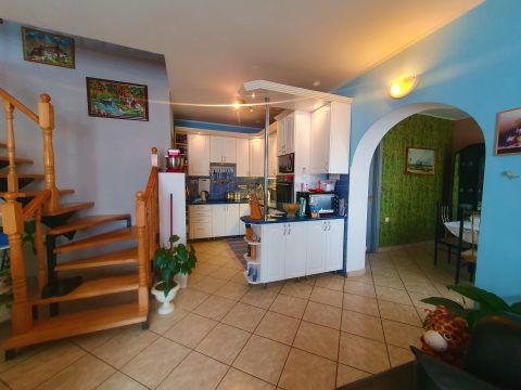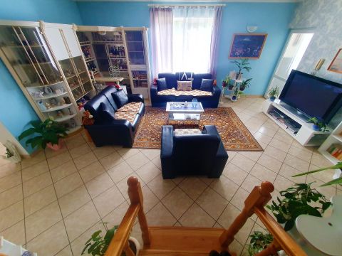 A ház duplakomfortos, két fürdőszobával rendelkezik, mindkét szinten padlófűtés van kiépítve, amely egy vegyes tüzelésű kazánról üzemel.Az alsó szinten egy amerikai konyhás nappalit találunk, wc-t, fürdőt, kamrát, innen nyílik a kazánház , amin kersztül kijuthatunk a garázsba. A felső szinten 3 háló, tágas nappali , fürdő, wc és egy gardrób szolgálja a lakók kényelmét A vezetékes víz mellett lehetőség van egy ásott kútról kiépített házi vízmű használatára is az ingatlanban, így csökkentve annak rezsi költségét A ház földszintjén található egy 60 m2 nagyságú üzlethelyiség, amely jelenleg presszóként üzemel, de könnyedén átalakítható akár egy önálló lakrésszé.