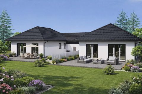 Az ingatlan elrendezése rendkívül praktikus: amerikai konyhás nappali, négy hálószoba, előtér, fürdőszoba, külön WC és háztartási helyiség alkotják a belső tereket. A házhoz egy  36 m²-es nyitott terasz is tartozik.